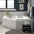 Transform any corner into a spa with this 58" triangular whirlpool bathtub. Designed for two people, its spacious silhouette optimizes your floor plan while high-performance hydrotherapy jets provide a rejuvenating massage. Crafted from premium high-gloss acrylic for superior heat retention and easy maintenance, this durable tub is the perfect modern upgrade for your home sanctuary.